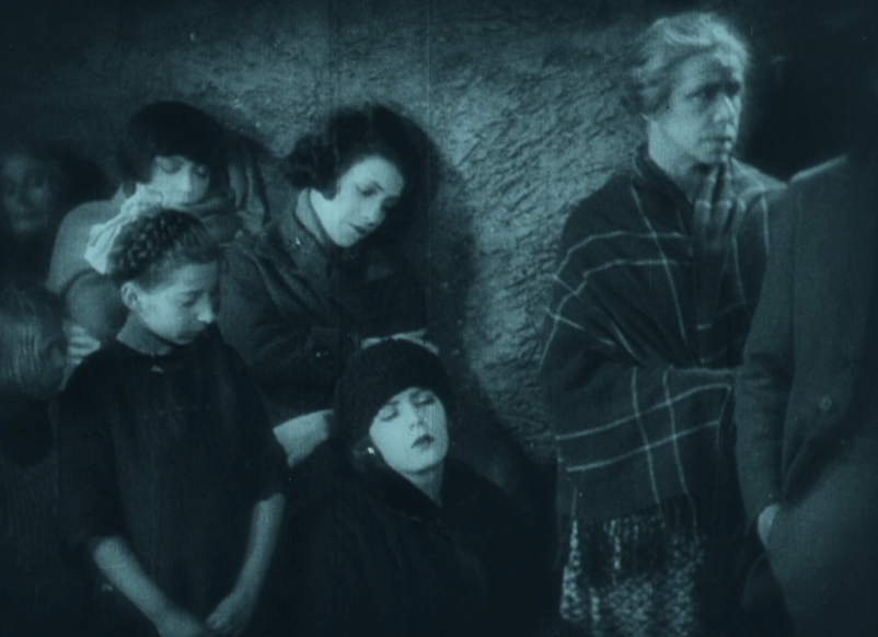 Contemporary reports describe the studio shoot without noting any particular incidents. Later recollections by participants—where recorded in writing—tend to focus on stories about Greta Garbo, each claiming to have been the first to recognize her star potential. More credible, since confirmed by multiple sources, are the anecdotes that Pabst barred Mauritz Stiller from the set because he attempted to direct his protégée Garbo, and that cinematographer Guido Seeber countered Garbo’s visible nervous trembling by using slight slow-motion shots. This new method of “Greta Garbo photography” set a precedent: her first American films were shot entirely in this manner.[32] The occasionally repeated claim that Asta Nielsen and Greta Garbo never appeared together in a scene can easily be disproved. In Act I, they stand next to each other in the queue outside the butcher’s shop; at the beginning of Act IV, both are visible simultaneously in Mrs.