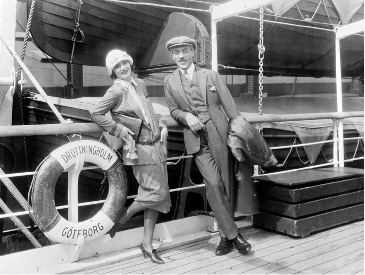 Greta Garbo and Mauritz Stiller in 1925 at their departure for America.