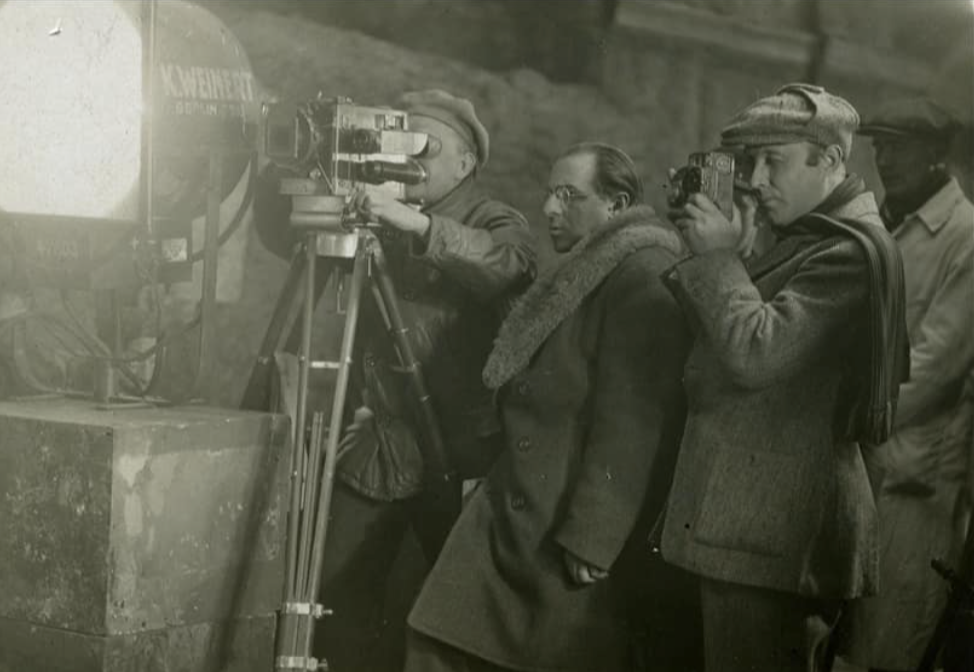 G. W. Pabst (center) during filming, Guido Seeber behind the camera.