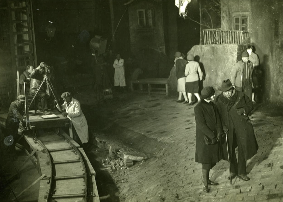Filming in the Melchiorgasse sets at the Staaken studio.