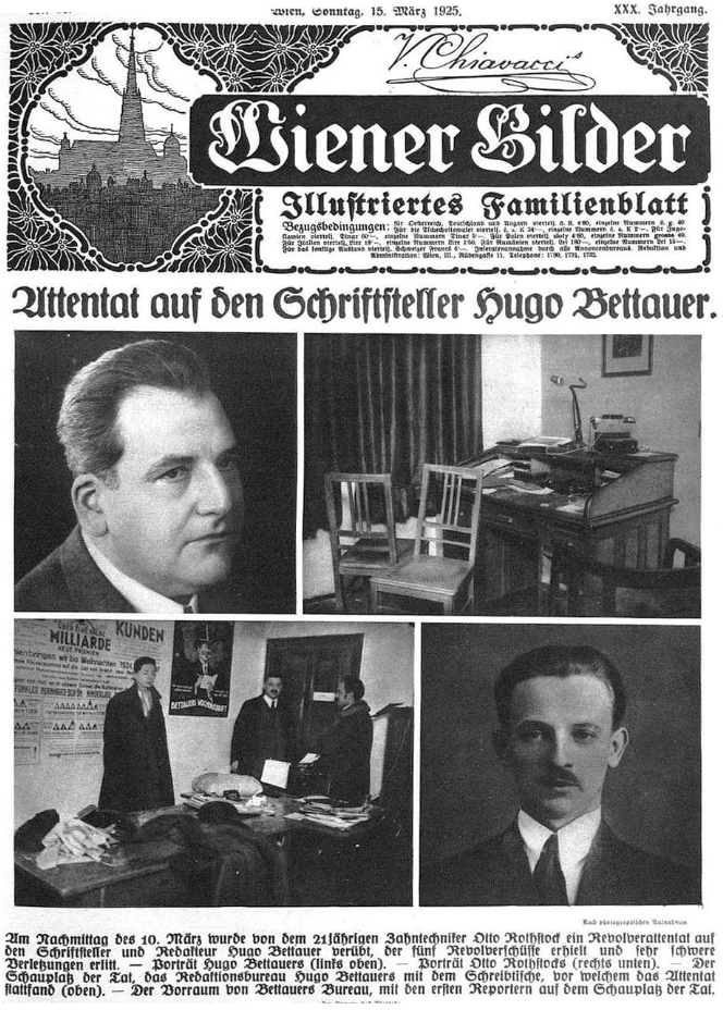 The shooting was overshadowed by the murder of Hugo Bettauer, who was shot by a fanatic in his Vienna editorial office on March 10, 1925, and died of his injuries on March 26. The contemporary press reported: